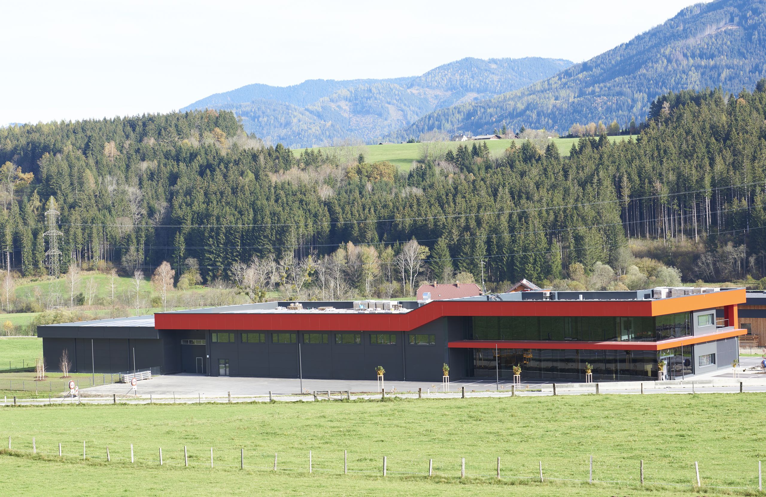 Die doppelstöckige Glasfassade des E-Werks Gröbming lässt technisch keine Wünsche offen. Die flächenbündigen, motorisierten Senkklappflügel sind teilweise absturzgesichert und auf Kundenwunsch in Grauglas ausgeführt. Der Farbton wurde exakt auf den restlichen Baukörper abgestimmt.